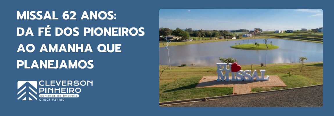 Hoje Missal vive um tempo de valorização urbana, com mais famílias chegando, investimentos surgindo e espaços se transformando. É uma cidade que amadureceu sem perder suas raízes, mas que olha para frente com clareza. E minha atuação como corretor nesse contexto vai além de vender imóveis. É um papel de orientação de famílias, de facilitar sonhos e acima de tudo, contribuir para um crescimento ordenado, seguro e sustentável, papel esse que só pode ser desempenhado por alguém que conhece a cidade, entende seu ritmo e sabe o que pode vir adiante.